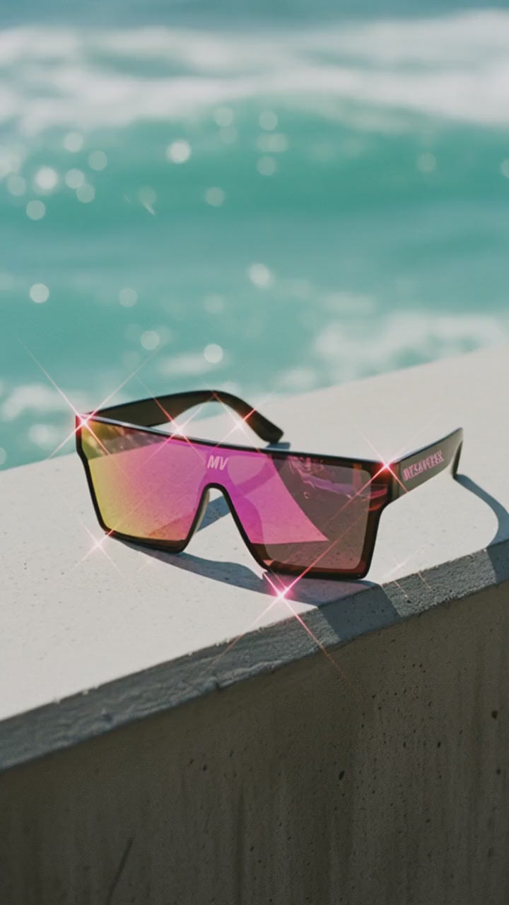 A bold, crystal-clear Bondi Blue lenses. The frame inspired by ocean light and digital horizons. These sunglasses blend high-fashion aesthetics with a futuristic edge.